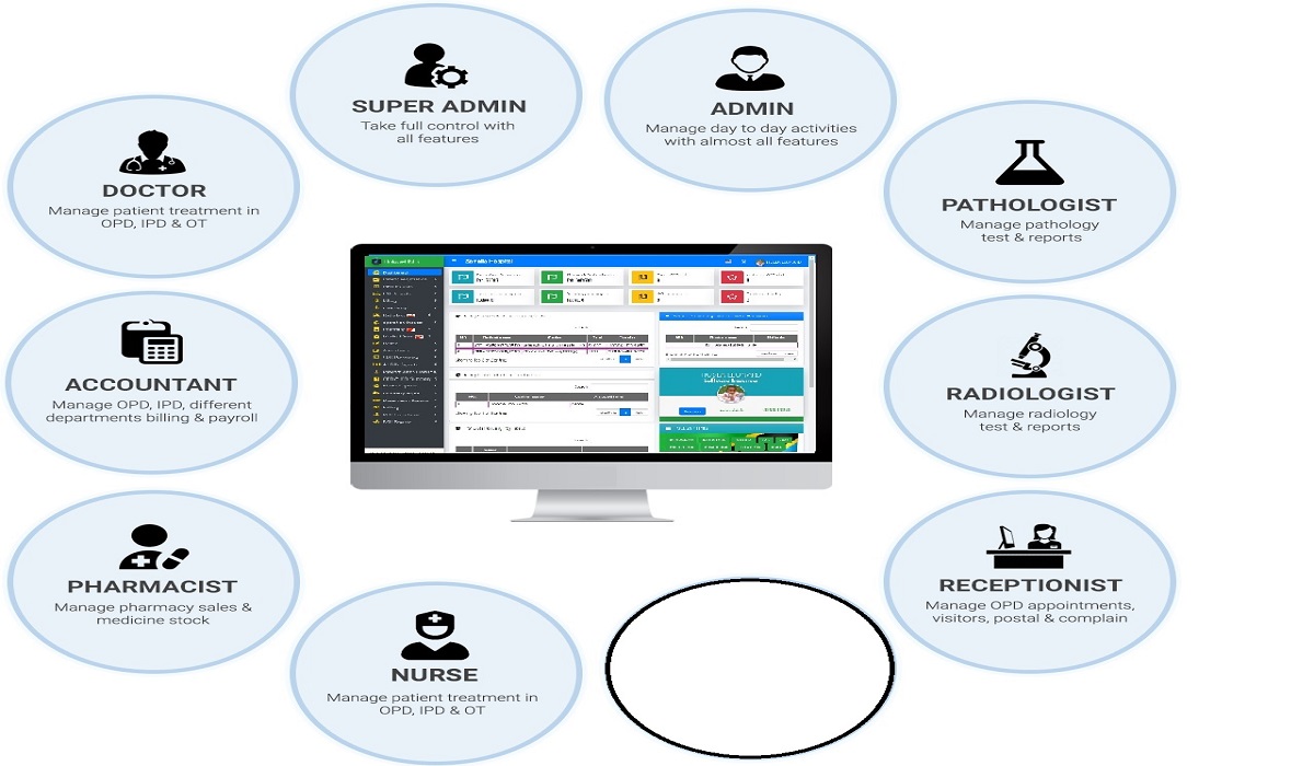 Pharmacy, Bills, Labs, Radiology, Theater